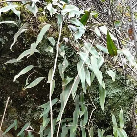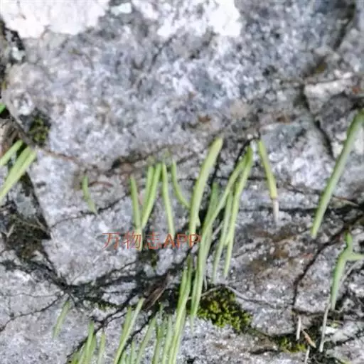 石附生小型蕨类,高10-12厘米。根状茎细长横走,密被鳞片;鳞片卵状披针形,长渐尖头,边缘具细齿,红棕色至淡棕色,盾状着生。叶远生,相距1-2厘米,几无柄,基部以关节着生;叶片线形,长3-9厘米,宽2-3.5厘米,钝尖头,基部渐狭缩,干后革质,边缘向下强烈反卷,幼时上面疏生星状毛,下面密被黄色星状毛,宿存。主脉明显,上面凹陷,下面隆起,小脉网状,沿主脉两侧各构成一行长网眼,无内藏小脉,近叶边的细脉分离,先端有一膨大的水囊。孢子囊群线形,沿主脉两侧各成一行,位于主脉与叶缘之间,幼时全被反卷的叶边覆盖,成熟时张开,孢子囊外露;孢子椭圆形,单裂缝,周壁上面具有分散的小瘤,外壁光滑。