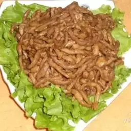 京酱肉丝,是一道知名度很高的菜肴,它是北京菜中的经典代表菜之一。制作时选用猪瘦肉为主料,辅以甜面酱…