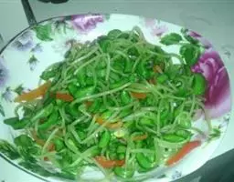 7、所有食材放入大碗中,加苹果醋、盐、麻油、少许糖(很少量,不能尝出甜味)和少许鸡精拌匀,装盘时上面撒上白芝麻即可。