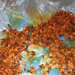 6、把沥干水的食材放入冰水中,保持食材脆爽(冰箱里常备一瓶冰水,做拌菜可以保持脆爽,另外,如在厨房溅到油、烫烧什么,可以马上敷下)。