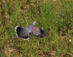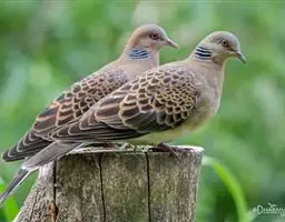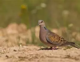 欧斑鸠体长27厘米,是一种体型略小的粉褐色斑鸠。颈侧具多黑白色细纹的斑块,翼覆羽深褐,…