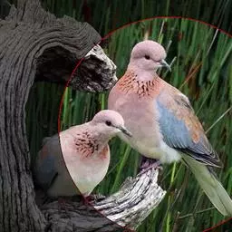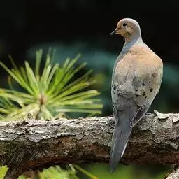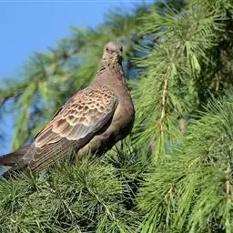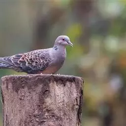 山斑鸠,是鸽形目鸽鸠科斑鸠属鸟类,又名金背斑鸠、棕背斑鸠、山鸠、金背鸠、麒麟斑、麒麟鸠、东方斑鸠、绿斑鸠、山鸽子。山斑鸠颈侧具明显黑白色条纹的块状斑,上体深褐色、具扇贝状斑纹,羽缘棕色,尾羽近黑色,下体多偏粉色。虹膜黄色,喙灰色,脚粉色。山斑鸠是留鸟,在中国常见且分布广泛。此外,还分布于不丹、尼泊尔、巴基斯坦、印度、日本等国。栖息于针阔混交林、季风常绿阔叶林、果园及农耕区,多成对活动于开阔农耕区、村舍、寺院周围及防火林带。取食于地面,主要觅食植物种子、果实、嫩芽等,也吃昆虫。山斑鸠飞翔时鼓翼快速,叫声为反复而低沉的“咕咕咕”声。繁殖期在4-7月,营巢于林中树上,通常一年繁殖2窝,窝卵数2枚,由雌雄亲鸟轮流孵卵,孵化期18~19天。山斑鸠的肉、卵可食,肉入药可益气明目、强筋壮骨,治久病气虚、衰弱无力、两目昏暗等病症。山斑鸠啄食杂草种子,对农田清除杂草有益;但有时也刨食农作物及树的种子。山斑鸠