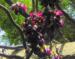花序长5-20厘米或更长,总花梗密被或疏生小柔毛;花通常2-3朵生于每一节上;花梗长4-10毫米,被柔毛或近无毛苞片线状披针形,早落,被柔毛;花萼钟形,长3-4毫米,被柔毛或近无毛,4裂,裂片三角形,较萼筒短,长1-12毫米,上部裂片全缘或先端微2裂;花冠紫色或紫红色,长9-17毫米,旗瓣宽椭圆形或倒卵形,先端微凹,圆形,基部楔形,翼瓣、龙骨瓣均具瓣柄,冀瓣具耳;雄蕊长7-13毫米;雌蕊长9-15毫米,子房被贴伏短柔毛。荚果扁平,线形,长3-5厘米,宽4-5毫米,疏被贴伏短柔毛,腹缝线近直,背缝线圆齿状,有荚节4-6。