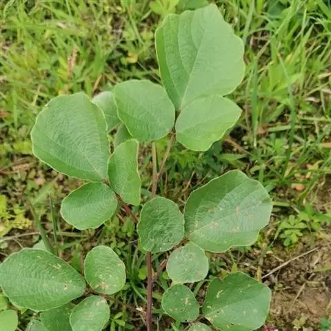 小叶3;托叶早落,狭卵形,长4-10毫米,宽1-2毫米,外面疏生柔毛,边缘有睫毛;叶柄长2-4厘米,被柔毛至渐变无毛;小叶长2-7厘米,宽1.5-5厘米,侧生小叶略小,先端圆或钝,或急尖至渐尖,基部宽楔形,常不对称或斜钝,上面被贴伏短柔毛或几无毛,下面被密或疏的短柔毛至近无毛,全缘或浅波状,侧脉4-6条,直达叶缘;小托叶线形,长1-3毫米,密被小柔毛;小叶柄长2-3毫米,被柔毛。