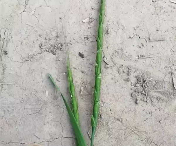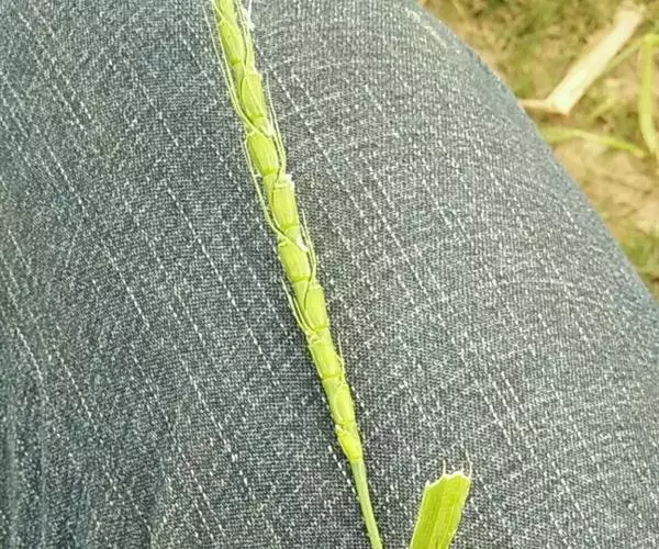 一年生粗壮草本。须根粗壮,常具支柱根。秆直立,高可达2米,亦可低矮丛生,直径可达8毫米,无毛。叶鞘具硬刺毛或变无毛;叶舌长约2毫米,上缘具纤毛;叶片线形,长可达50厘米,宽可达2厘米,中脉粗壮,无毛或上面疏生短硬毛,边缘粗糙。总状花序粗壮直立,上部渐尖,长可达15厘米,直径3-4毫米;总状花序轴节间肥厚,长约5毫米,易逐节断落。无柄小穗嵌生于凹穴中,第一颖质厚,卵形,背面糙涩,先端钝或具2-3微齿,多脉,边缘具极窄的翅;第二颖质较薄,舟形;第一小花雄性,花药常较第二小花的短小而色深;第二小花两性,花药黄色,长约2毫米;雌蕊柱头紫色。颖果长圆状卵形。有柄小穗之小穗柄与总状花序轴节间愈合,小穗着生在总状花序轴节间1/2-2/3部位,绿色,卵状长圆形,含2雄性小花或退化。花果期秋季。