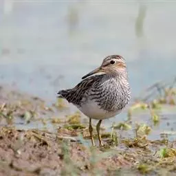 林鹬体长约20厘米,体型略小,纤细,褐灰色,腹部及臀偏白,腰白。上体灰褐色而极具斑点;眉纹长,…