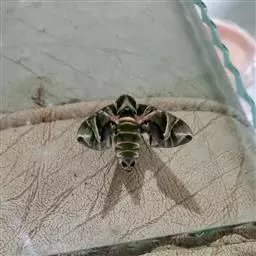 夹竹桃天蛾是鳞翅目天蛾科昆虫。又称夹竹桃白腰天蛾、巴纹天蛾。成虫呈青黑色,四翅正反面都以橄榄色为主调,…