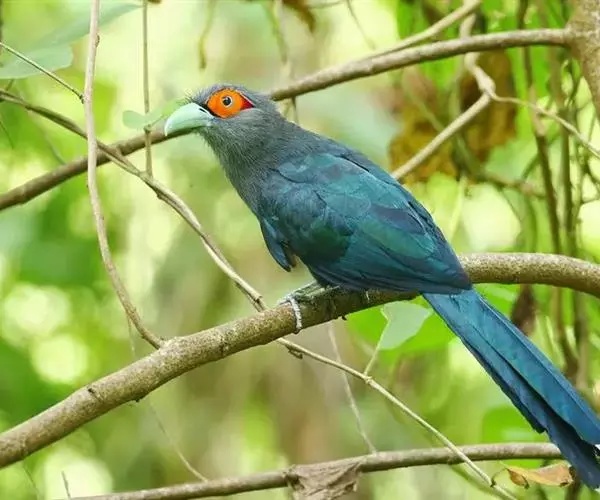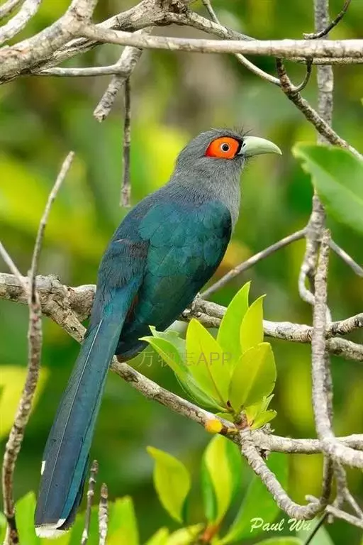 绿嘴地鹃(学名:Phaenicophaeus tristis):体形似小鸦鹃,但羽色大致绿灰;嘴绿色,头侧眼的周围有一裸区;后爪弯曲。虹膜赤红色,眼外周裸露皮肤繁殖期为赤红色,非繁殖期为暗红色。嘴绿色,基部及先端色暗,近嘴角处常沾红色,非繁殖期下嘴黄褐色,脚石板绿色。幼鸟和成鸟相似,但缺少光泽。枕、颈和上背沾棕栗色,下嘴橙褐色,尾较短。