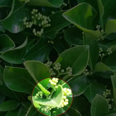 冬青卫矛,是卫矛科卫矛属灌木植物,聚伞花序,花白绿色,花萼裂片半圆形,花瓣近卵圆形,…