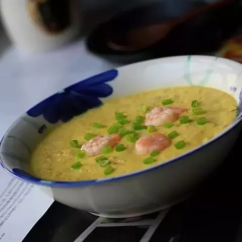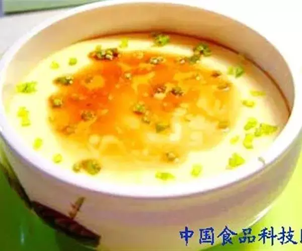 1、将鸡蛋、水、盐搅匀,上蒸锅蒸熟,制成蛋羹;