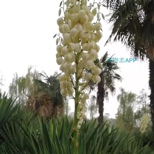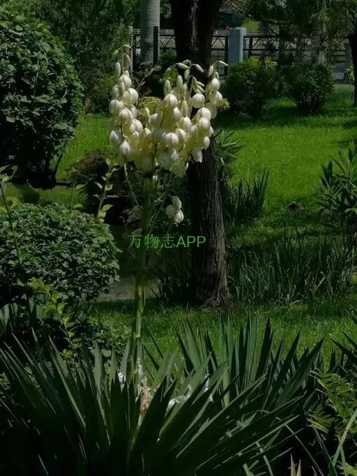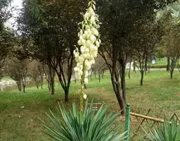 凤尾丝兰又称菠萝花 ,龙舌兰科 ,学名Yucca gloriosa L. ,常绿木本植物,具短茎并常有分枝。夏、秋两季为开花期。 植株呈莲座状,大型的圆锥花序着生多数似钟形而下垂的洁白花朵,给人以素雅而脱俗之感。既可观花,又可赏叶。