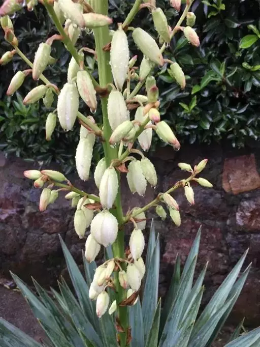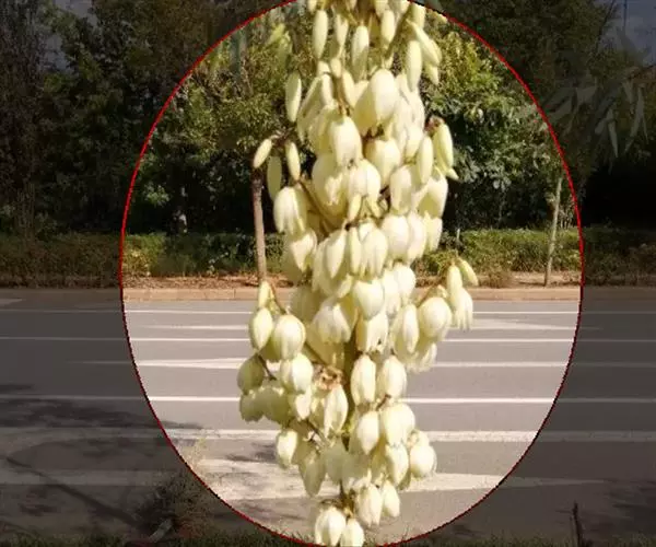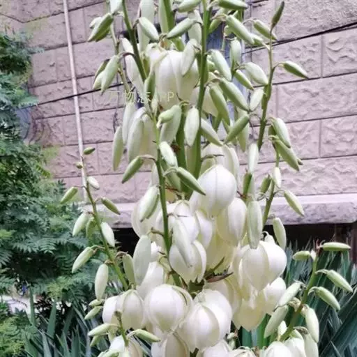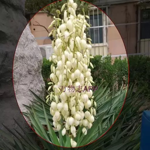花莛高1米~2米,大型圆锥花序,有花多朵;花白色至乳黄色,顶端常带紫红色,下垂,钟形,花被 6片,卵状菱形;花期7月~9月。由于其巨大的花序十分引人注目,很受人们欢迎。是萨尔瓦多的国花。常在公园花坛中种植。在华北地区种植需稍加保护方能越冬。喜疏松、排水良好的砂质壤土和充足的阳光。生长势强健,栽培甚易。通常用分株和播种法繁殖。由于其叶片尖部为硬刺,易伤人,不宜家庭中种植 。