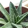 叶剑形、坚硬,密生成莲座状,长40厘米~60厘米,中部宽约4厘米~6厘米,有稀疏的丝状纤维,微灰绿色,顶端为坚硬的刺,呈暗红色。