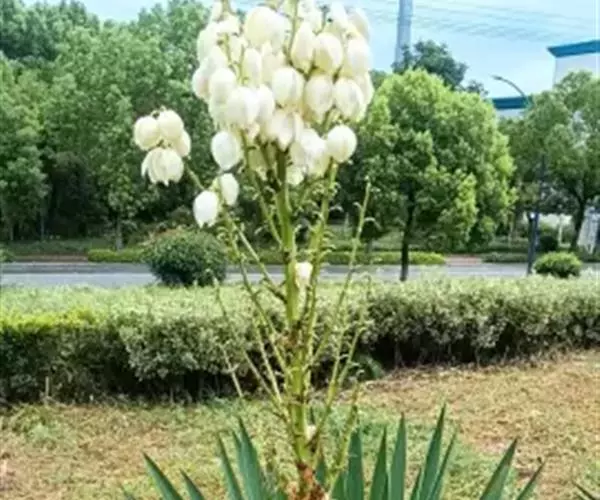 凤尾丝兰,龙舌兰科多年生木本。常绿灌木,植株矮小。叶丛生,叶片较薄耐用柔软,反曲,线状披针形至剑形、常绿、茎短,有时可高达1米。