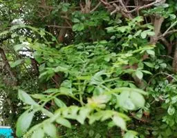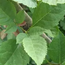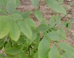 羽状复叶长5-15厘米;叶柄长2.5-4.5厘米,基部增厚;叶轴直,上面具窄沟,被细绒毛;小叶5-7枚,硬纸质,阔卵形,菱形至卵状披针形,长2-5厘米,宽1.5-3厘米,顶生小叶与侧生小叶几等大,先端尾尖,基部阔楔形,叶缘具深锯齿至缺裂状,两面均光滑无毛,中脉在两面凸起,侧脉4-6对,细脉明显网结;小叶柄短,长0.2-1.5厘米,被柔毛。
