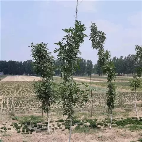 整形修剪:苗木栽植前修剪苗木根系,保留根系长15-20厘米。从苗木栽植后的第2年开始对苗木进行定干,定干高度在60-120厘米。定干后的第2年要对苗木实施整形修剪,经过2-3年的整形处理,苗木形状基本固定,当年秋季或次年春季即可出圃栽植。每年还要对苗木进行适当的修剪,主要是缩剪影响苗木主干生长的大侧枝和剪除苗木下部1/3以内的所有侧枝、萌枝。如果主枝长势弱或主枝受损,可选择生长强健的大侧枝代替主枝。根据需要也可在苗木定植后的第2年开始对苗木进行定干,苗木定植4-5年后即可出圃栽植,此时苗木直径可达3-4厘米,园林绿化中应带土移栽。