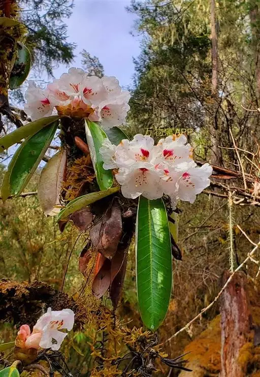 露珠杜鹃:灌木,小乔木,高约2-9米;小枝粗壮,直径约4-5毫米;幼枝有薄层绒毛和腺体,…