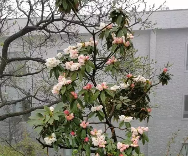 团叶杜鹃:常绿灌木,稀小乔木,高1-4.5米,稀达15米;树皮褐色;幼枝绿色,无毛,老枝黄褐色。顶…