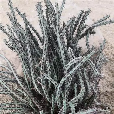 虎刺梅:别称铁海棠,是蔓生灌木植物。茎多分枝,长60-100厘米,直径5-10毫米,具纵棱,密生硬…