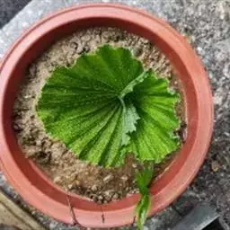 方法一 准备好兰盆及植料后,将兰株倒拿(根在上,叶在下)放于水龙头下以慢水冲洗,但水压切忌过强,以免伤兰根及叶子。用拇指和食指抓住兰头,小指抵住盆缘,用竹筷将根固定,当放入盆内时,尽量不要让根接触到盆壁。将豆粒大的混合石砾倒入盆底至三分之一处。然后倒入中粒植料至五分之四处,填实和尽量不要留下空间。将竹筷拔出,并摇实盆中植料。填实植料后,再用大粒植料埴入至距盆缘1.5厘米处。最后再倒入豆粒大植料,以将假鳞茎全部埋入土中为度,然后充分摇实。用压土工具轻压植料,并将表面弄平。种植完毕后,植料在盆中以中央稍高为好。