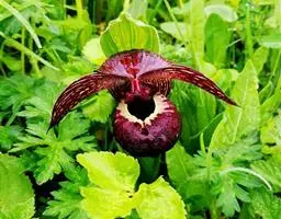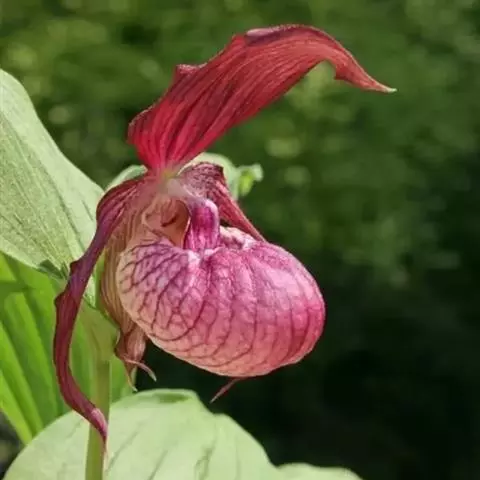 大花杓兰因其形状酷似一个口小肚大的囊袋,又名“大口袋兰”。花体呈紫红色,花朵直径5厘米至6厘米,…
