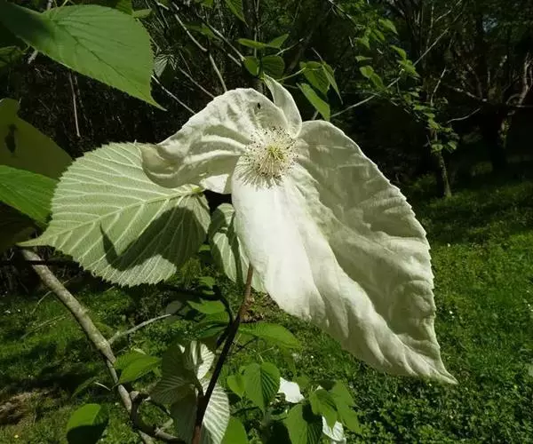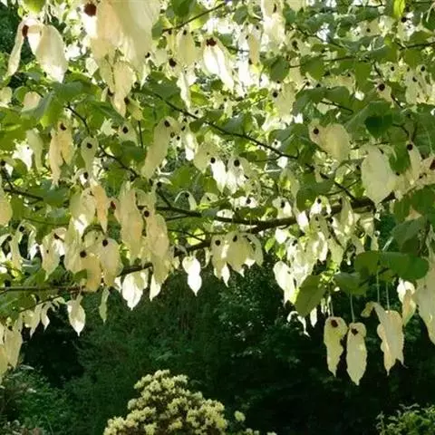 珙桐树 珙桐,春末夏初开花,从初开到凋谢色彩多变,一树之花,次第开放,异彩纷呈,人们称赞它为“一树奇花”。关于它,有这样一段佳话。