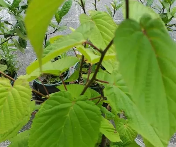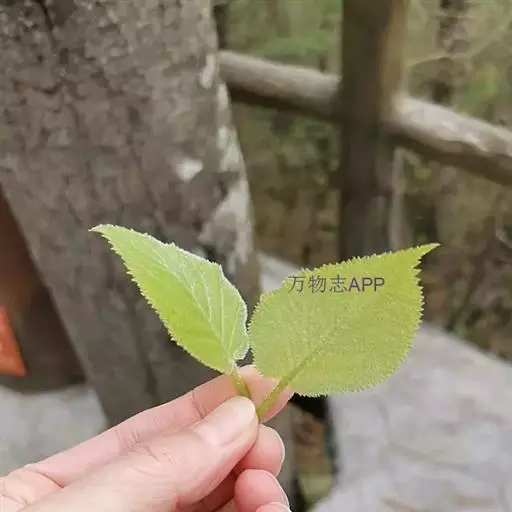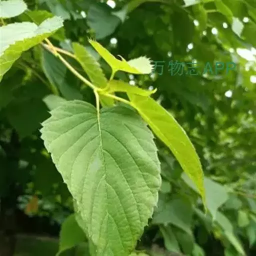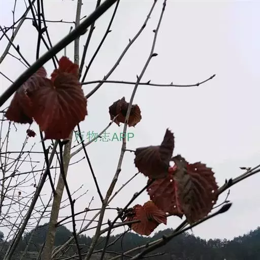 落叶乔木,高15-20米,稀达25米;胸高直径约1米;树皮深灰色或深褐色,常裂成不规则的薄片而脱落。幼枝圆柱形,当年生枝紫绿色,无毛,多年生枝深褐色或深灰色;冬芽锥形,具4-5对卵形鳞片,常成覆瓦状排列。叶纸质,互生,无托叶,常密集于幼枝顶端,阔卵形或近圆形,常长9-15厘米,宽7-12厘米,顶端急尖或短急尖,具微弯曲的尖头,基部心脏形或深心脏形,边缘有三角形而尖端锐尖的粗锯齿,上面亮绿色,初被很稀疏的长柔毛,渐老时无毛,下面密被淡黄色或淡白色丝状粗毛,中脉和8-9对侧脉均在上面显著,在下面凸起;叶柄圆柱形,长4-5厘米,稀达7厘米,幼时被稀疏的短柔毛。两性花与雄花同株,由多数的雄花与1个雌花或两性花成近球形的头状花序,直径约2厘米,着生于幼枝的顶端,两性花位于花序的顶端,雄花环绕于其周围,基部具纸质、矩圆状卵形或矩圆状倒卵形花瓣状的苞片2-3枚,长7-15厘米,稀达20厘米,宽3-5厘米,稀达10厘米,初淡绿色,继变为乳白色,后变为棕黄色而脱落。雄花无花萼及花瓣,有雄蕊1-7,长6-8毫米,花丝纤细,无毛,花药椭圆形,紫色;雌花或两性花具下位子房,6-10室,与花托合生,子房的顶端具退化的花被及短小的雄蕊,花柱粗壮,分成6-10枝,柱头向外平展,每室有1枚胚珠,常下垂。果实为长卵圆形核果,长3-4厘米,直径15-20毫米,紫绿色具黄色斑点,外果皮很薄,中果皮肉质,内果皮骨质具沟纹,种子3-5枚;果梗粗壮,圆柱形。花期4月,果期10月。