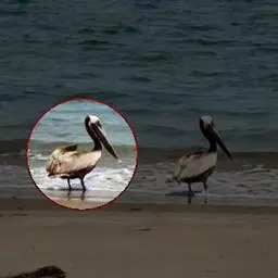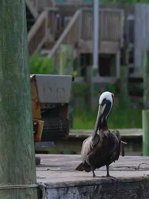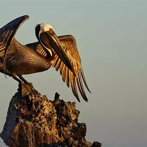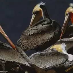 褐鹈鹕:是鹈鹕家族中体型最小的成员。体型粗大,体重6.5-9千克。嘴形宽大直长,上嘴尖端朝下弯曲,…