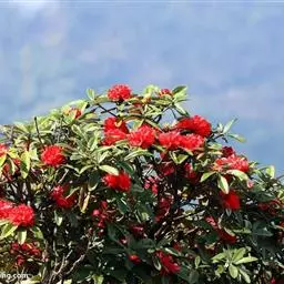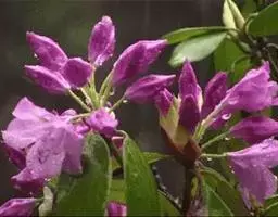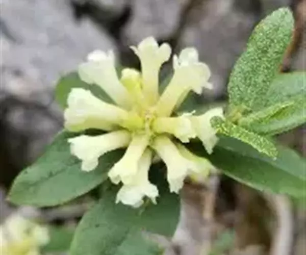 烈香杜鹃(学名:Rhododendron anthopogonoides Maxim.):常绿灌木,高可达2米,枝条粗壮而坚挺,叶芳香,革质,上面蓝绿色,无光泽,下面黄褐色或灰褐色,叶柄被疏鳞片,花序头状顶生,有花10-20朵,花密集,花萼发达,淡黄红色或淡绿色,花冠狭筒状漏斗形,淡黄绿或绿白色,罕粉色,有浓烈的芳香,花柱短,约与子房等长,蒴果卵形,6-7月开花,8-9月结果。
