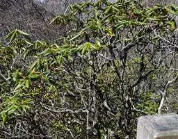 弯蒴杜鹃:常绿灌木,高可达5米。枝细长,灰褐色,叶革质,常集生枝顶,近于轮生,叶柄被刚毛或腺头刚毛…