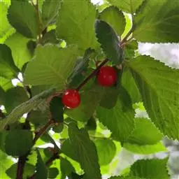 樱桃属于乔木,株高达3-8米,树皮红褐色;嫩枝无毛或被疏柔毛;冬芽无毛;叶卵形或长圆状倒卵形,…