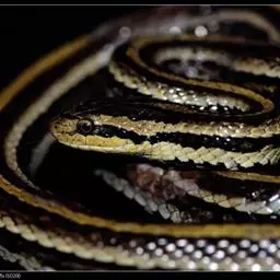 体长形,头部平扁,尾部侧扁 。