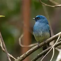 纯蓝仙鹟:体长16-17厘米,体重18-23克。是一种体型略大的浅蓝色或近褐色的鹟。雄鸟上体亮丽钴蓝,…