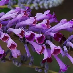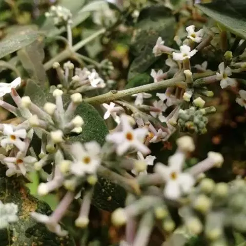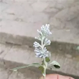 花:花多朵组成簇生状或 圆锥状聚伞花序;花序较短,密集,长1-4.5厘米,宽1-3厘米,常生于二年生的枝条上;花序梗极短,基部通常具有少数小叶;花梗长3毫米;花芳香;花萼钟状,长2.5-4毫米,具四棱,外面密被灰白色星状绒毛和一些腺毛,花萼裂片三角状披针形,长0.5-1.7毫米,宽0.8-1毫米,内面被疏腺毛;花冠紫蓝色,外面被星状毛,后变无毛或近无毛,花冠管长6-10毫米,直径1.2-1.8毫米,喉部被腺毛,后变无毛,花冠裂片近圆形或宽卵形,长和宽1.2-3毫米;雄蕊着生于花冠管内壁中部,花丝极短,花药长圆形,长1-1.8毫米,顶端急尖,基部心形;子房长卵形,长约1.2毫米,直径约0.7毫米,无毛,花柱长约1毫米,柱头卵状。