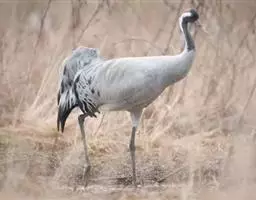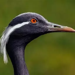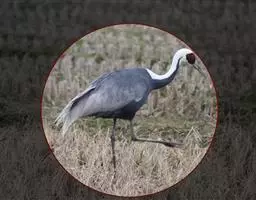 蓑羽鹤大型涉禽,体长68~92厘米,是鹤类中个体最小者。通体蓝灰色,眼先、头侧、喉和前颈黑色,…