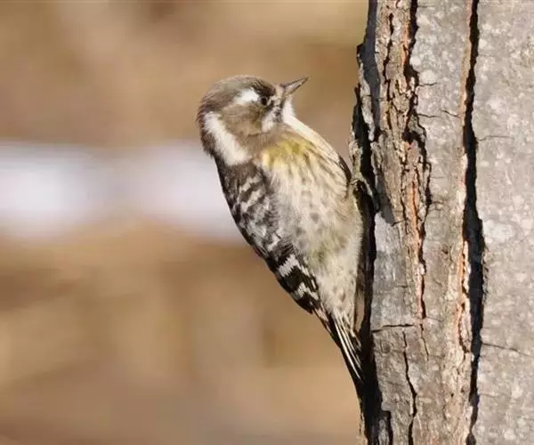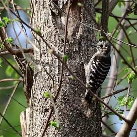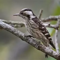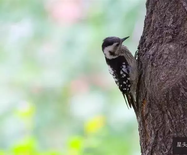小星头啄木鸟(学名:Dendrocopos kizuki),是啄木鸟科、啄木鸟属的小型鸟类,体长12-17厘米,额、头顶至枕灰褐色,雄鸟枕两侧各有一深红色小纵斑;颊纹和眉纹白色,翕和颈侧具白斑,其余上体黑色,具白色横斑。翅黑色而具白色斑点。喉白色,其余下体污白色,具黑褐色纵纹。