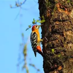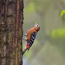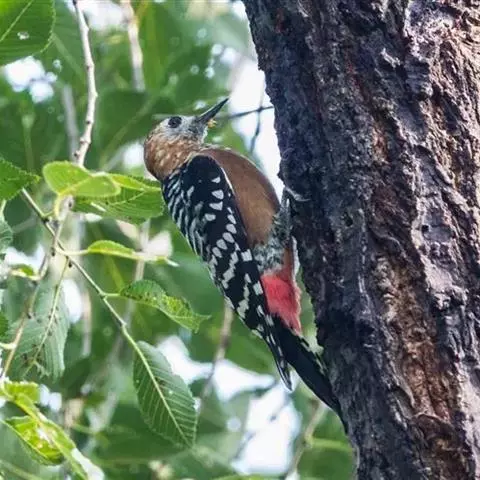 棕腹啄木鸟为啄木鸟科,啄木鸟属是中等体型的鸟类,体长约20厘米。头顶部具红色斑带。脚强健,有趾4个,…