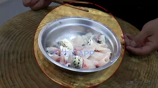 2、片好鱼片以后,将鱼片和鱼排鱼头分别用1茶匙料酒、2茶匙淀粉和1/2个蛋清和适量的盐抓匀,腌制15分钟;