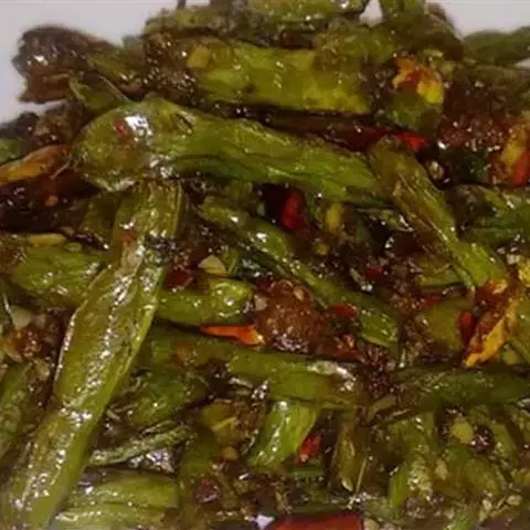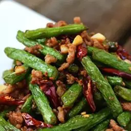干煸四季豆是一道特色传统菜肴,属于川菜菜系,主要制作材料有四季豆、猪肉、红干辣椒等。干煸四季豆口味…