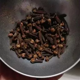 8.另准备少许蒜末,撒入盆中,油锅另备油,放入折断的干辣椒,下火炸至红棕色出香味,将辣椒油浇在蒜末上,顿时香味四溢。