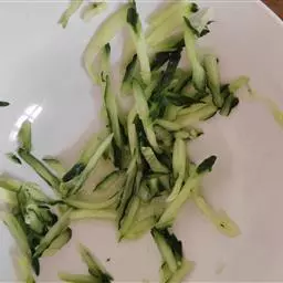 3.酸菜冲洗干净,斜切成条状。