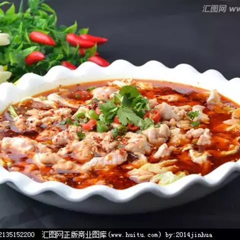4.将锅内汤汁熬出味后,把鱼片抖散入锅。用另一锅入油烧热,把泡辣椒末炒出味后,倒入汤锅内煮1至2分钟。待鱼片断生至熟,加入味精,倒入汤盆子中即成。