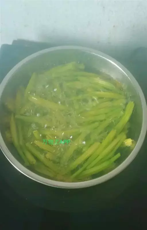 4.炒锅热油,将一根筷子插入油锅内,看见筷子头有大量的小气泡冒出,这时候的油温就可以。