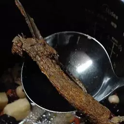 14.过滤鱼汤倒入碗中。