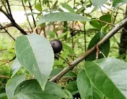 落叶灌木,老枝褐紫色,叶互生;膜质,花单性,白色,雌雄异株,雌花单生于叶腋,核果球形,成熟时黑色,花期4 ~5 月,果期10~11 月。生于山地疏林内或林缘灌丛中。