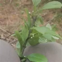 秤星树 落叶灌木,高达3米;具长枝和宿短枝,长枝纤细,栗褐色,无毛,具淡色皮孔,短枝多皱,具宿存的鳞片和叶痕,形如秤星,故名为“秤星树”。叶膜质,在长枝上互生,在缩短枝上,1-4枚簇生枝顶,卵形或卵状椭圆形,长(3-)4-6(-7)厘米,宽(1.5-)2-3.5厘米,先端尾状渐尖,尖头长6-10毫米,基部钝至近圆形,边缘具锯齿,叶面绿色,被微柔毛,背面淡绿色,无毛,主脉在叶面下凹,在背面隆起,侧脉5-6对,在叶面平坦,在背面凸起,拱形上升并于近叶缘处网结,网状脉两面可见;叶柄长3-8毫米,上面具槽,下面半圆形,无毛;托叶小,胼胝质,三角形,宿存。