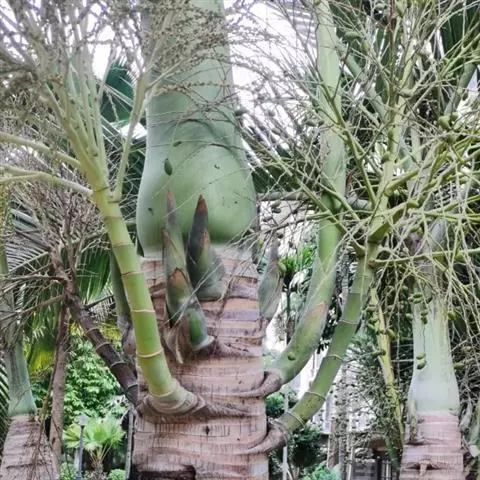 霸王棕是棕榈科霸王棕属常绿乔木,高可达20~30米。基部膨大,叶基宿存。叶片扇形,掌状分裂,…