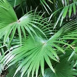 蒲葵 R. Br. ex Mart.),棕榈科蒲葵属木本植物。叶为扇形,两面均为绿色,…