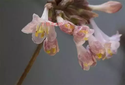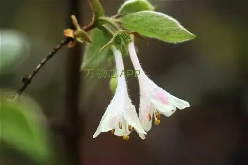 花与叶同时开放,总花梗出自二年生小枝顶端苞腋,长0.5-2.8厘米;苞片宽卵形至卵状披针形或披针形,长(5-)7-10毫米,下面被小刚毛;相邻两萼筒分离,有腺毛和刚毛或几无毛,萼檐长1-2毫米,有不整齐钝齿,其中1枚较长,有硬毛及腺缘毛或无毛;花冠白色或带粉红色,长漏斗状,长(1.3-)1.5-2厘米,外被糙毛或无毛,筒细长,基部有浅囊,裂片稍不整齐,卵形或卵状矩圆形,长约为筒的1/3;雄蕊不高出花冠裂片;花柱稍伸出,无毛。果实红色,椭圆形,长10毫米,疏被腺毛和刚毛或无毛;种子淡黄褐色,稍扁,矩圆形或卵圆形,长3.5-4毫米,平滑。花期4-5月,果熟期5-6月。