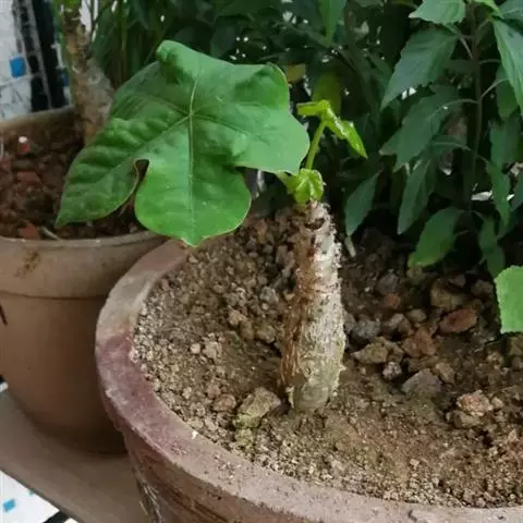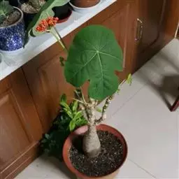瓶干树又名佛肚树,学名是Jatropha podagrica Hook.,瓶干树的原生地是澳洲的昆…